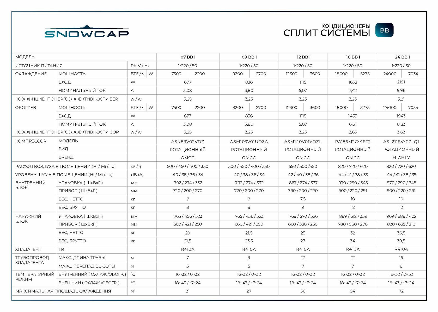 Настенные кондиционеры мощностью от 7500 до 24000 БТЕ/ч. Серия BB отличается матовой белой 3D панелью внутреннего блока. Все модели серии BB оснащены ротационными компрессорами бренда GMCC или HIGHLY. Допустимый перепад высот между внутренним и наружным блоком от 5 до 8 метров. В комплектацию кондиционера входит набор инсталляции, что избавит вас от дополнительных затрат.