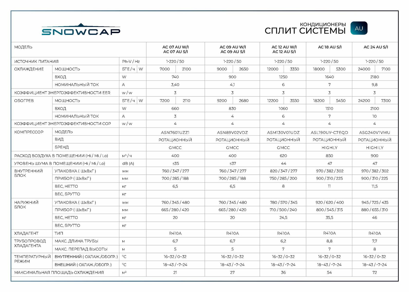 Настенные кондиционеры мощностью от 7000 до 24000 БТЕ/ч. Серия AU отличается стеклянным покрытием панели внутреннего блока. Все модели серии AU оснащены ротационными компрессорами бренда GMCC или HIGHLY. Допустимый перепад высот между внутренним и наружным блоком: от 5 до 8 метров. В комплектацию кондиционера входит набор инсталляции, что избавит вас от дополнительных затрат.